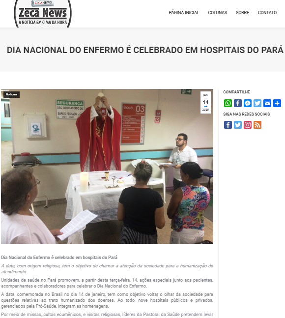 Zeca News – Cultos ecumênicos marcam as celebrações o Dia Nacional do Enfermo em hospitais gerenciados pela Pró-Saúde no Estado