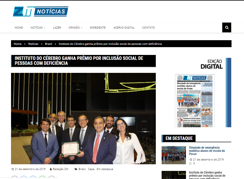 ZM Notícias – Instituto Estadual do Cérebro ganha prêmio por inclusão social de pessoas com deficiência
