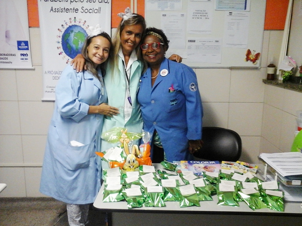 A Comissão de Humanização do 16º Centro de Saúde de Imbassay, em Salvador (BA), celebrou a Páscoa com diversas atividades. O tema deste ano foi “Páscoa é tempo de renovação, vamos fortalecer os laços de amizade e amor”. Para os colaboradores que estavam de plantão, foi oferecido um almoço com chocolates de sobremesa. Já as crianças internadas na unidade, receberam brindes lúdicos, como livros de pintura com lápis de cera.