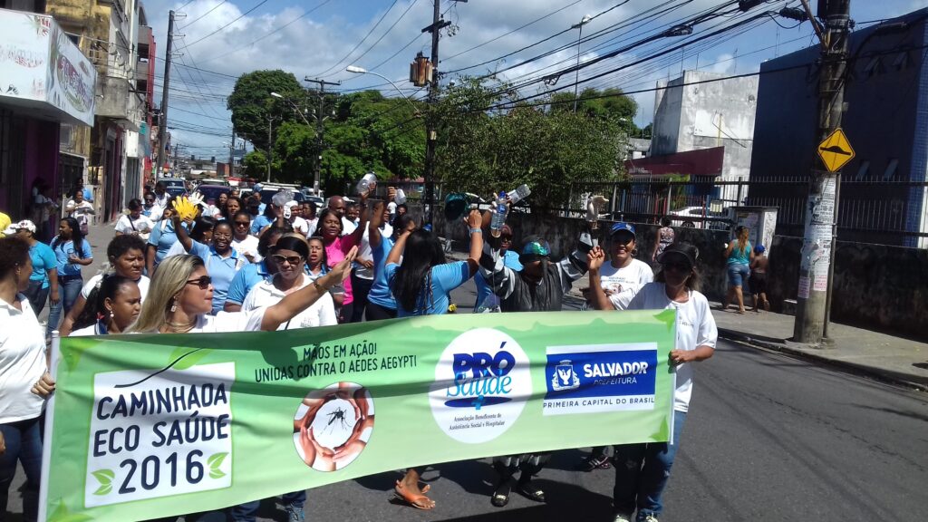 O 16º Centro de Saúde Maria da Conceição, em Salvador (BA), promoveu, no dia 26 de fevereiro, a 1º Caminhada Eco Saúde. A ação teve como tema “Mãos em ação! Unidas contra o Aedes aegypti”, foi liderada pela colaboradora Itana Moraes, em parceria com agentes comunitários, além de contar com o apoio da Polícia Militar da Bahia.