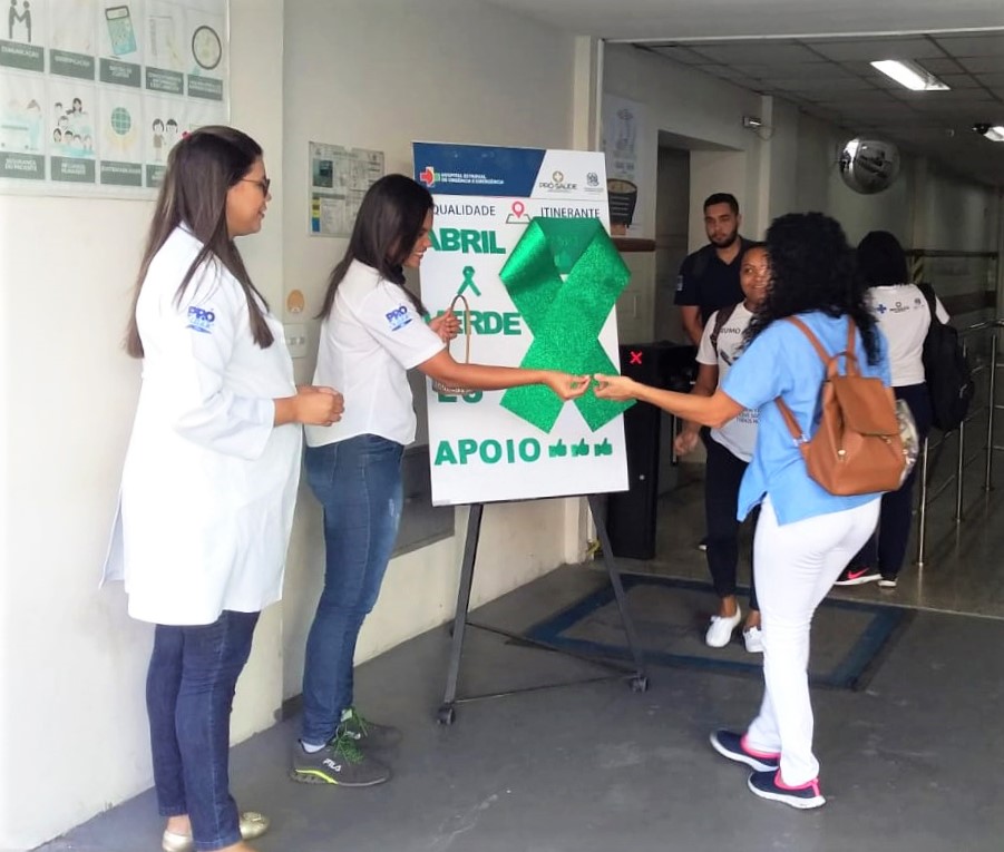 Nos dias 8 e 9 de abril, a equipe do Serviço Especializado em Engenharia de Segurança e em Medicina do Trabalho (SESMT) realizou a entrega de laços verdes, fazendo alusão à campanha e durante todo o mês, os colaboradores do hospital irão receber orientações em cada setor sobre a importância da prevenção e cuidados com a saúde no ambiente de trabalho.