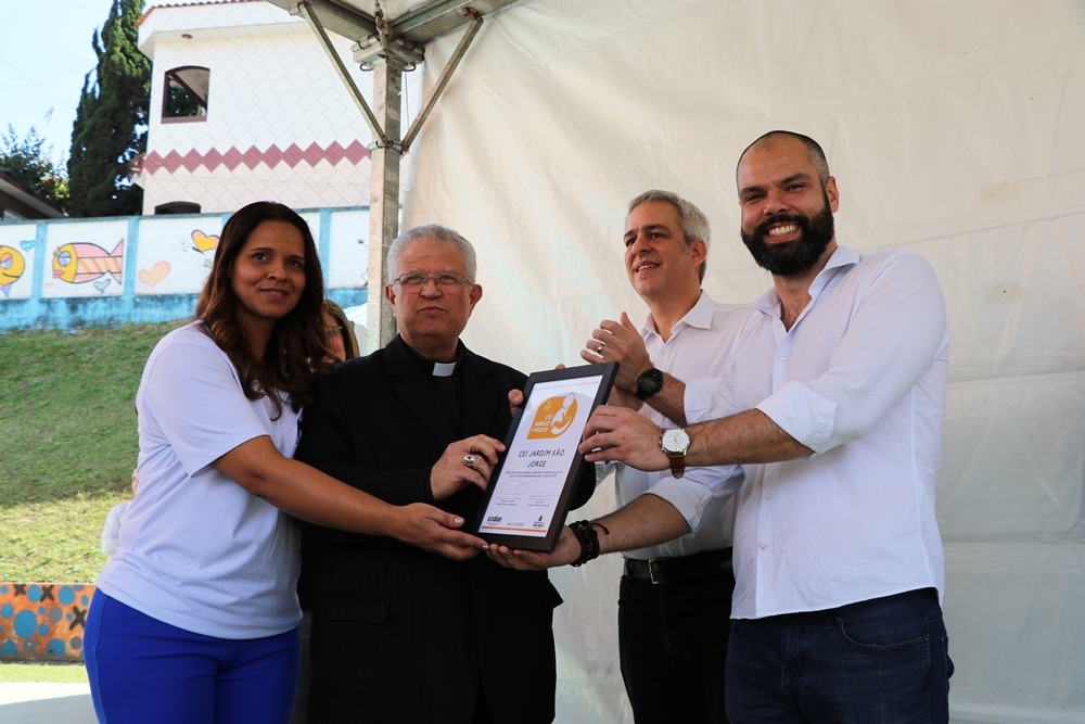 O Centro de Educação Infantil (CEI) São Jorge, localizado em Guaianases, Zona Leste da capital paulista, uma das unidades educacionais gerenciadas pela Pró-Saúde, recebeu nesta sexta-feira (24/8), o prêmio “CEI Amigo do Peito”. O selo é o reconhecimento da Prefeitura de São Paulo às creches que apoiam e incentivam a continuidade do aleitamento materno e trabalham para melhorar a qualidade de suas práticas.