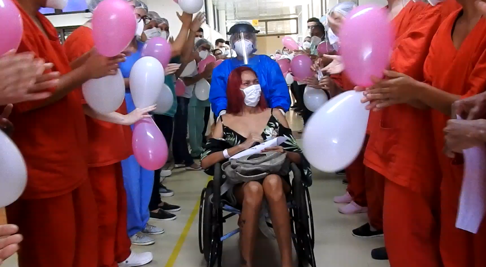 Na saída do hospital, a jovem foi homenageada pelos profissionais do HRPT com um corredor de aplausos. “É uma sensação maravilhosa de dever cumprido. Estamos aqui pelos pacientes, sempre. Eles são nosso gás diário na luta contra o vírus”, disse a fisioterapeuta Grazielle Gonçalves, uma das profissionais da equipe multidisciplinar que cuidou de Bruna.