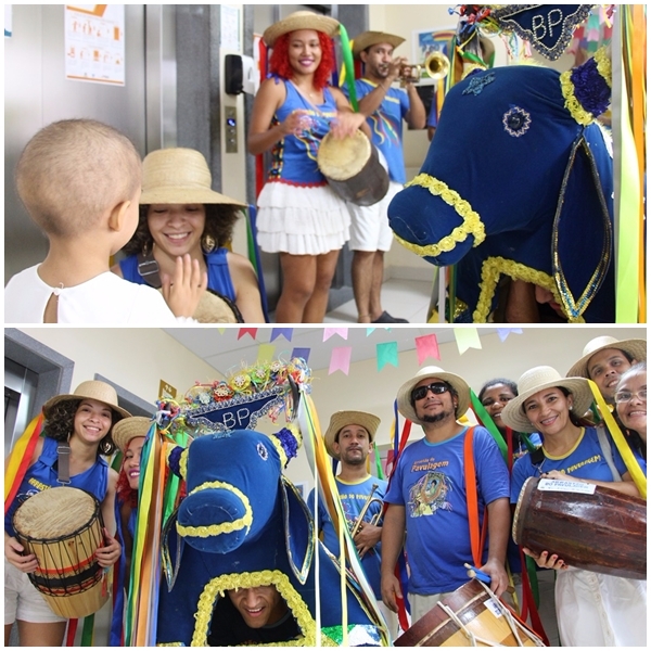 Os músicos integrantes do arrastão do grupo Arraial do Pavulagem fizeram uma manhã inteira de programação pelos corredores do Hospital Oncológico Infantil Octávio Lobo nesta sexta-feira, 30/6, em Belém (PA), que é gerenciado pela Pró-Saúde Associação Beneficente de Assistência Social e Hospitalar, sob contrato de gestão com a Secretaria de Estado de Saúde Pública (Sespa). Os chapéus adornados com laços de fita multicoloridos, as barricas e o trompete fizeram soar bois-bumbás e músicas juninas, animando setores de internação e atendimento ambulatorial. Crianças e adolescentes atendidos pelo Oncológico dançavam e brincavam com o boi-bumbá Pavulagem por onde o cortejo passava.