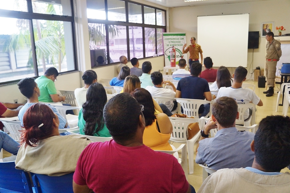Ministrada pelo Corpo de Bombeiros Militar do Estado do Pará, a capacitação foi realizada em duas etapas, sendo a primeira teórica na sala de treinamento e a segunda no estacionamento do Bloco 05 do hospital.