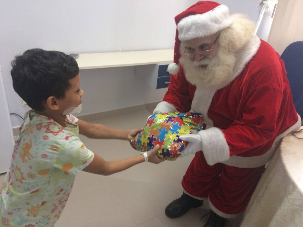 Para Ruan Guilherme de oito anos de idade, da cidade de Itupiranga à 56Km de Marabá, o Natal chegou mais cedo com a visita surpresa do Papai Noel, que o recebeu com abraços e um belo presente. Internado com o quadro clínico de infecção mandibular há 17 dias no HRSP, o garoto escreveu uma carta muito especial, onde retratou da sua maneira o amor que sente pelo Natal, o desejo de conhecer o bom velhinho e de ganhar um presente especial.