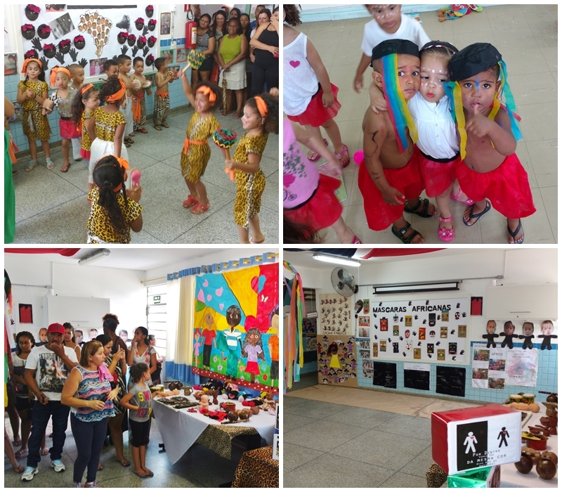 Foram abordados assuntos sobre a história e cultura Africana e Afro-brasileira. As crianças realizaram atividades como pintura de boneca, contaram e desenharam a história da “Galinha d’angola”, confeccionaram a bandeira da África, entre outras atividades.