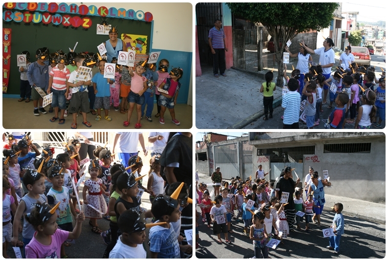 A atividade visou chamar a atenção sobre os cuidados para evitar a proliferação dos focos do mosquito Aedes aegypti, transmissor da dengue, Zika vírus e chikungunya. O CEI tratou a ação de forma lúdica, com a realização de uma passeata com professoras e alunos pelas ruas do bairro com o objetivo de conscientizar e mobilizar as famílias sobre a importância de evitar deixar água parada em pneus, garrafas e vasos de plantas. As crianças usaram máscaras do Aedes aegypti e pequenas placas que mostravam imagens com dicas para evitar o aparecimento de focos do mosquito.