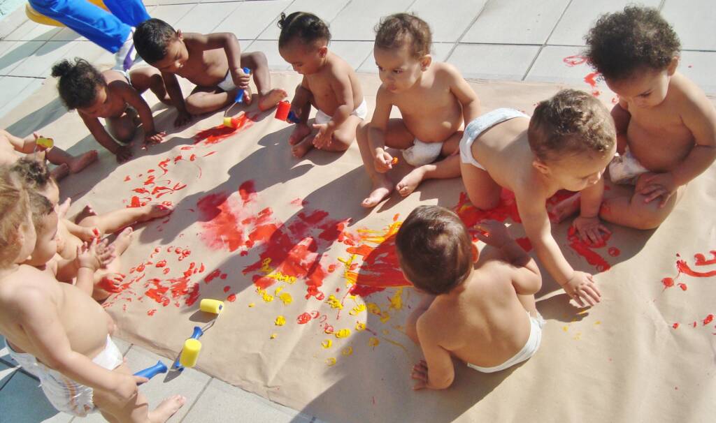 Cientes dessa importância, as professoras do berçário I, do CEI (Centro de Educação Infantil) Jardim São Jorge, administrado pela Pró-Saúde, desenvolveram uma atividade ao ar livre com os bebês. Eles foram conduzidos a uma área externa (solário), onde ficaram à vontade, com tintas guache de diversas cores e pincéis. O objetivo desta atividade foi estimular, nas crianças, o conhecimento das cores, além de desenvolver as linguagens corporal, visual, artística e verbal.