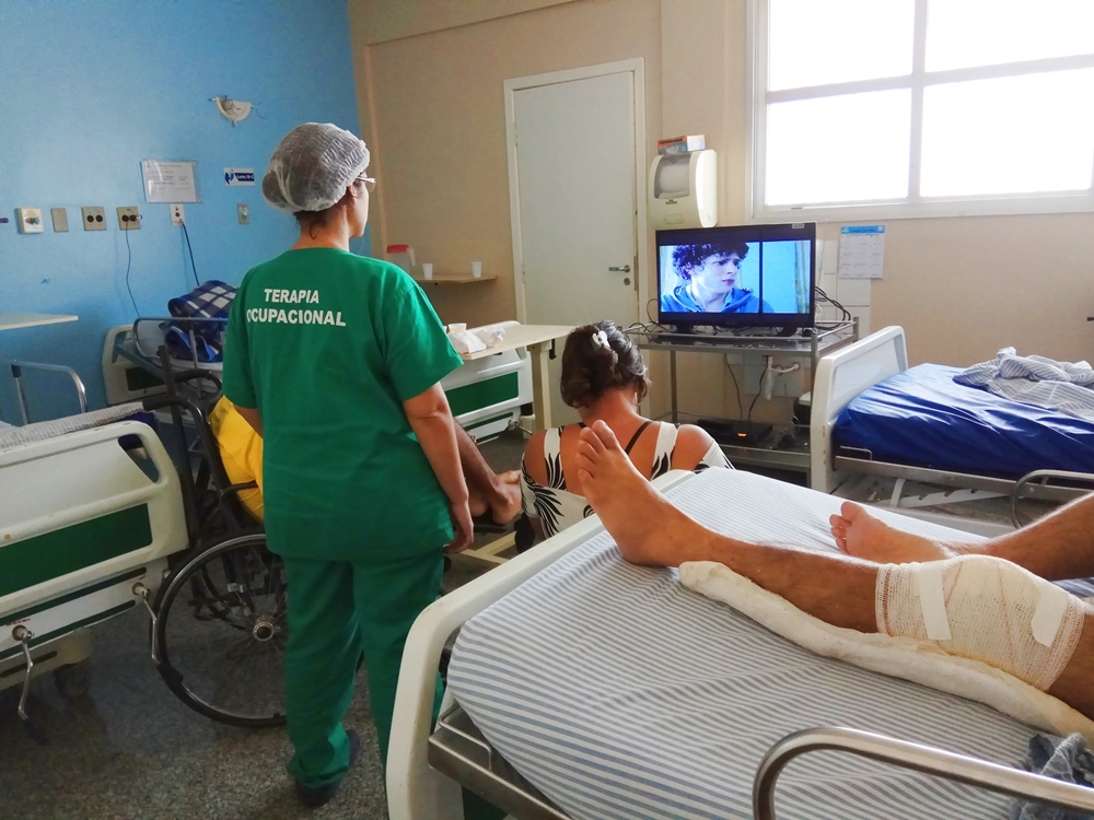 A Comissão de Humanização do Hospital de Urgências da Região Sudoeste (Hurso), em Santa Helena de Goiás (GO), retomou, este mês, com um dos projetos mais queridos da unidade, o Cine Hurso. A proposta é que os pacientes escolham entre os filmes disponíveis na DVDteca do Hospital, e a televisão com o aparelho de DVD vá até o quarto dos pacientes.