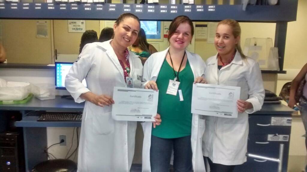 Na última semana, Patrícia Meirelles e Cristina Dorbação, responsável técnica e enfermeira, respectivamente, do Banco de Leite Humano (BLH) do Hospital Estadual Rocha Faria, no Rio de Janeiro (RJ), receberam o Certificado ‘Tutoras’ por participarem da Oficina Mulher Trabalhadora que Amamenta. Esse curso é oferecido a profissionais sensibilizados com o tema amamentação na mulher trabalhadora e tem por objetivo capacitar e ensinar a lidar com empregadores, informando-os da importância da manutenção do leite materno para o filho da trabalhadora, bem como tornar o participante um multiplicador desta ação.