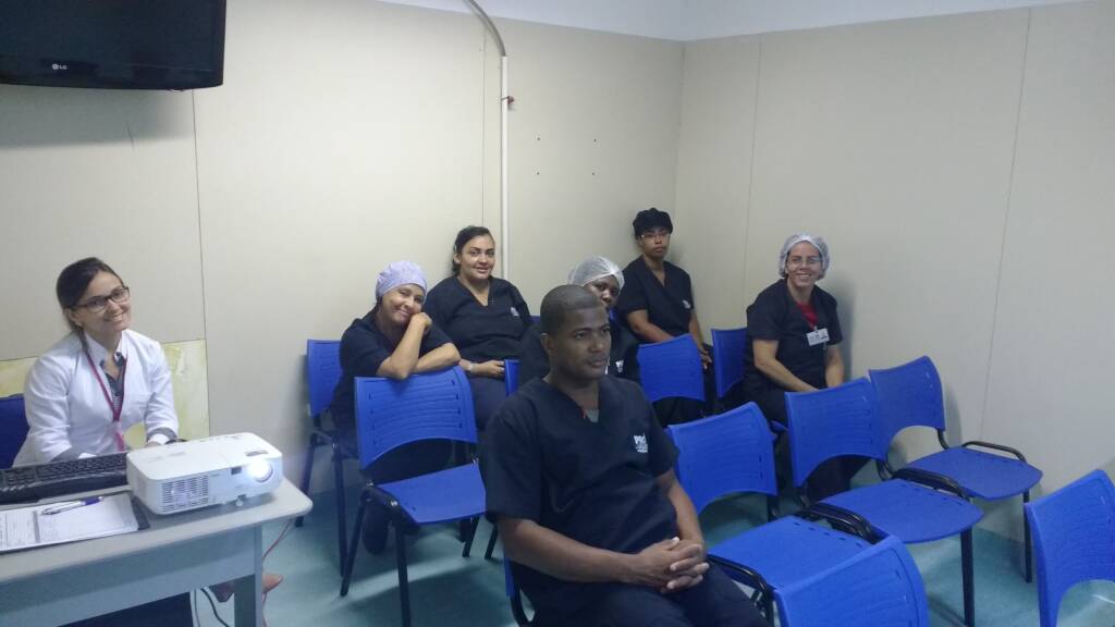 A equipe de Serviços de Higienização e Limpeza do Hospital Alayde Costa (HAC), localizado em Salvador (BA), se reuniu, em maio, para um treinamento, ministrado pela enfermeira Juliana Filgueiras, que abordou as normas, condutas e comportamento ético, biossegurança e uso adequado de EPI's e EPC's, responsabilidade e classificação de áreas hospitalares, resíduos, entre outras rotinas relacionadas aos agentes de higienização. A ação teve como objetivo capacitar a equipe e prepará-la para executar as normas com excelência.