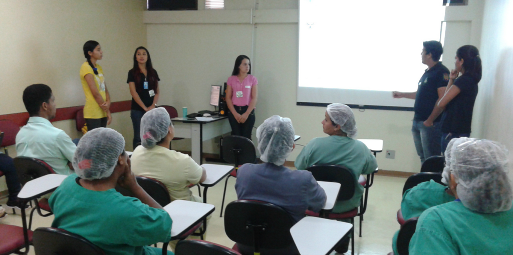 A palestra foi ministrada por Acadêmicos de Engenharia Ambiental, uma parceria do HRPT com a Universidade Estadual do Pará (UEPA), e teve como objetivo orientar e conscientizar os colaboradores da importância do gerenciamento do resíduo hospitalar e o dano que esse material traz a saúde pública e ao meio ambiente, caso não seja descartado de forma correta.