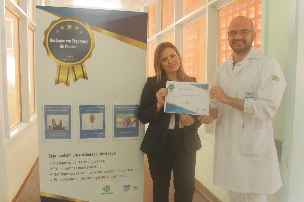 Mensalmente os profissionais que mais contribuem para a segurança do paciente no Hospital Yutaka Takeda (HYT), na Serra dos Carajás (PA), recebem o reconhecimento do projeto ''Destaque em Segurança do Paciente''. O Núcleo de Qualidade e Segurança do Paciente (NQSP) contabiliza por meio de notificações os colaboradores que foram destaque na melhoria da assistência presta e os premia em três categorias: ''Número de Notificações'', ''Barreiras de Segurança'' e ''Propostas de melhorias''.