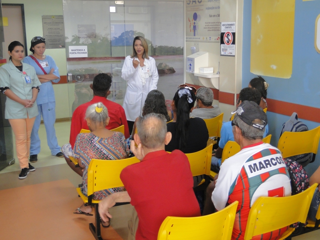 Já na quarta-feira, 29/11, foi a vez de palestrar sobre o assunto para usuários e acompanhantes do hospital. O setor da Hemodiálise foi o escolhido para a atividade, que foi ministrada pela fisioterapeuta Elays Marinho.