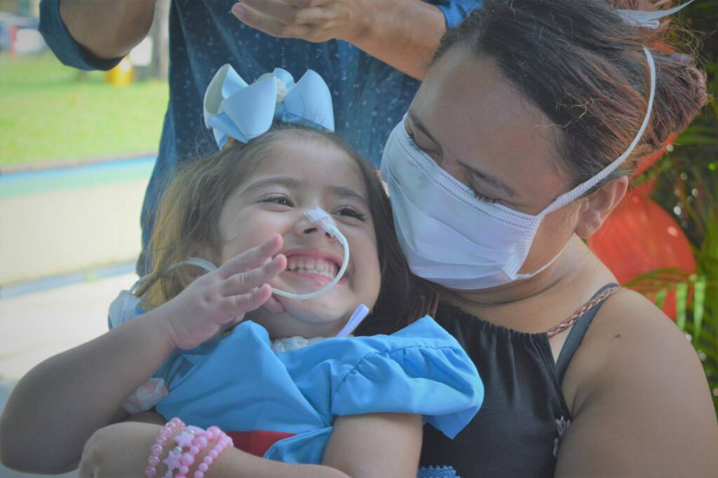 A profissional conta ainda que a criança passou pela Unidade de Terapia Intensiva (UTI) por três vezes, momentos de muita luta para a paciente e seus familiares. “Ela é uma guerreira e tá se saindo muito bem. Ela já está entrando no processo final e se Deus quiser, ela vai sair daqui logo, logo”.