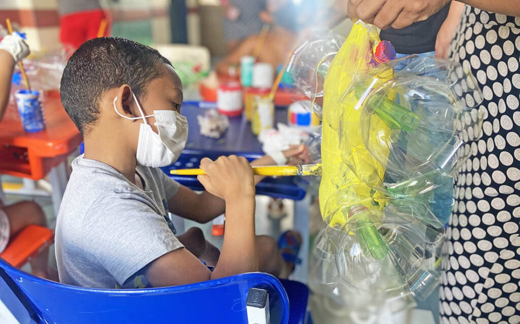 “Esse é um importante momento para ensinar as crianças que nem tudo é lixo. Essas garrafas pet, por exemplo, se tornam brinquedos que vão durar muito tempo; além desse momento de descontração há a aprendizagem para todos”, destaca Bruna Furtado, analista de Sustentabilidade do HMUE, unidade do Governo do Estado que atua como referência para traumas e queimaduras.