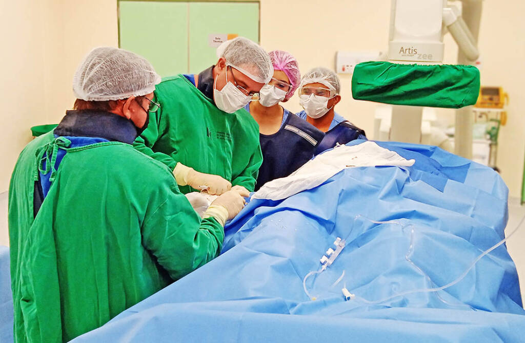 “O procedimento é realizado por meio da inserção de cateteres nos vasos sanguíneos das pernas ou dos braços, que são guiados até o coração por um equipamento especial de raios-x, possibilitando a visualização das artérias, câmaras e válvulas cardíacas. O exame demora em média 20 minutos”, detalhou José.