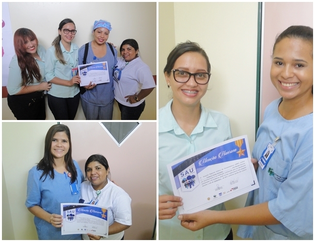 Mensalmente, o SAU realiza a entrega dos certificados aos três colaboradores que mais receberam elogios dos usuários e colam suas fotos no mural, para que quem passe por ali veja quem foram os escolhidos. Em setembro, além de Elaine, as técnicas de Enfermagem Amanda Silva Pereira e Eslaine Alves Almeida também ocuparam o pódio dos elogiados. É uma forma de exaltar o bom trabalho e incentivar toda a equipe do HRPT.