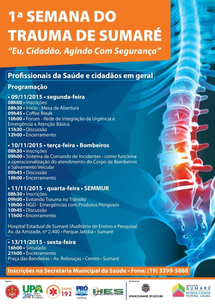 A UPA 24h Macarenko, administrada pela Pró-Saúde, sob contrato de gestão com a Secretaria Municipal de Saúde de Sumaré, participa da 1ª Semana do Trauma de Sumaré. O evento, organizado pela Prefeitura, acontece de 09 a 13/11, e conta com a participação da Secretaria Municipal de Saúde, do Corpo de Bombeiros, da Secretaria Municipal de Mobilidade Urbana e do SAMU. A participação da Pró-Saúde no evento acontece após a realização de um processo de capacitação da equipe de enfermagem da UPA Macarenko, voltado para o atendimento de urgência e emergência.