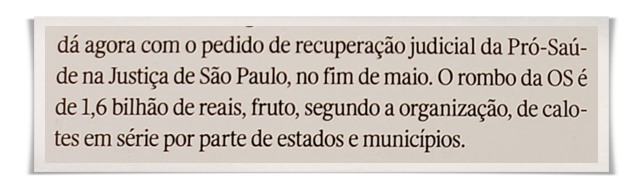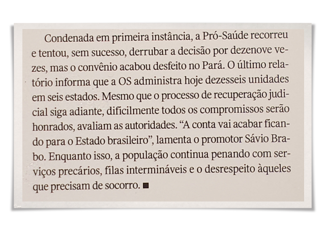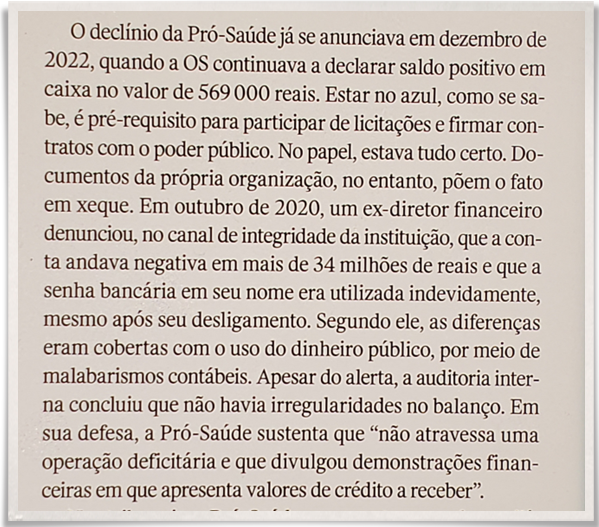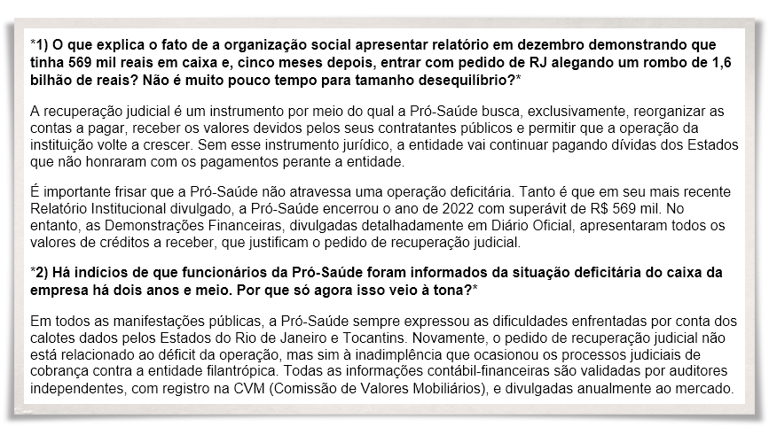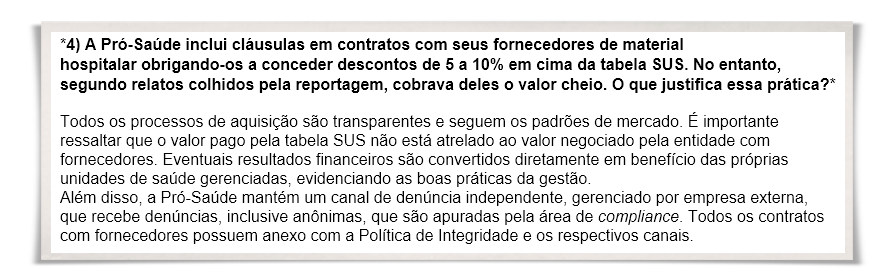 Importante destacar que esses assuntos não foram perguntados pela revista, o que tirou da Pró-Saúde seu direito de resposta.