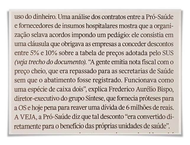 Após quatro parágrafos com insinuações sem quaisquer provas contra o diretor executivo da Pró-Saúde, Dr. Wagner Portugal, a revista admite acusações sem provas: