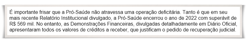 Nesse contexto, a Pró-Saúde não questiona o interesse público de seus atos, mas os pré-julgamentos com base em fatos que tentar confundir seus stakeholders.