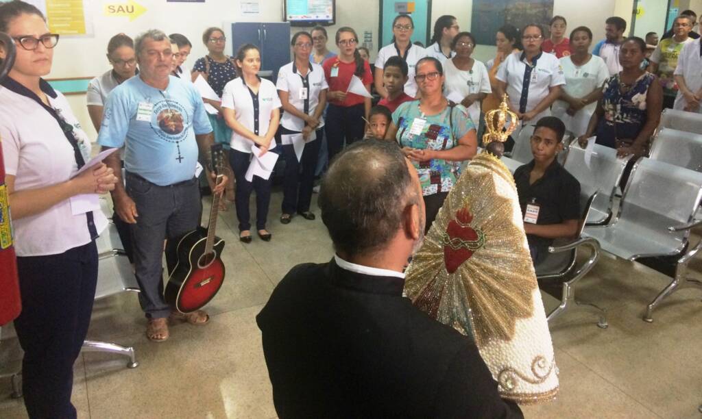 Religiosidade e muita espiritualidade. Foi esse o clima que marcou a passagem da Imagem Peregrina de Nossa Senhora de Nazaré e contagiou usuários e colaboradores na última sexta-feira (27/9), no Hospital Regional do Sudeste do Pará Dr. Geraldo Veloso (HRSP), gerenciado pela Pró-Saúde Associação Beneficente de Assistência Social e Hospitalar, em Marabá (PA), na região da Amazônia. A imagem foi recebida no hospital pelos seus diretores e coordenador Corporativo da Pastoral da Saúde, o bispo emérito Dom Antônio Carlos Altieri.