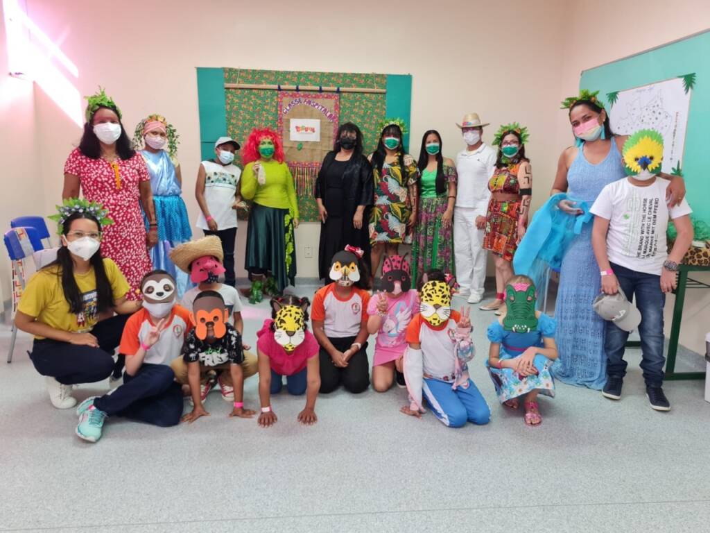 A peça teatral intitulada de “Festa na Floresta” integrou uma das etapas do projeto anual “Amazônia: povos da floresta e rios”, desenvolvido pela equipe de professores da Classe Hospitalar do Oncológico Infantil, principal referência no Norte do país em oncologia pediátrica. A unidade pertence à rede de Saúde Pública do Governo do Estado e é gerenciada pela Pró-Saúde.