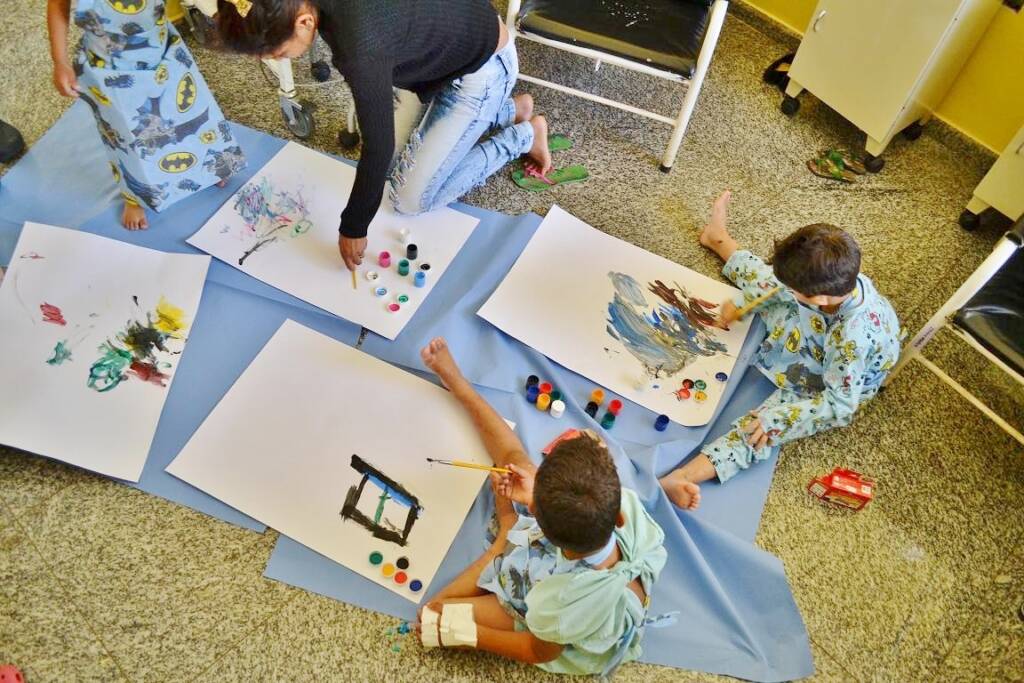 No Kit das Crianças foi dado a cada paciente infantil: um avental (confeccionado pela mãe do fisioterapeuta Marley Marques), 1 caixa de tinta à base de água, 1 pincel e 1 cartolina. Para Karinny Oliveira, também fisioterapeuta, a ação desenvolvida foi para despertar a imaginação das crianças tornando assim um recurso valioso para o atendimento assistencial. “A pintura permite a criança expressar seus sentimentos, relaxar, fugir por alguns instantes de seu estado de doença, lembrando que ela pode ser criança mesmo dentro do Hospital”, explicou ela, completando que ainda pode-se desenvolver uma comunicação e vínculo maior entre colaboradores e usuários, o que consequentemente gerará um sucesso maior na recuperação do paciente. “Dá mais vontade de melhorar ao lembrar do que se pode ter de novo”, finalizou ela.