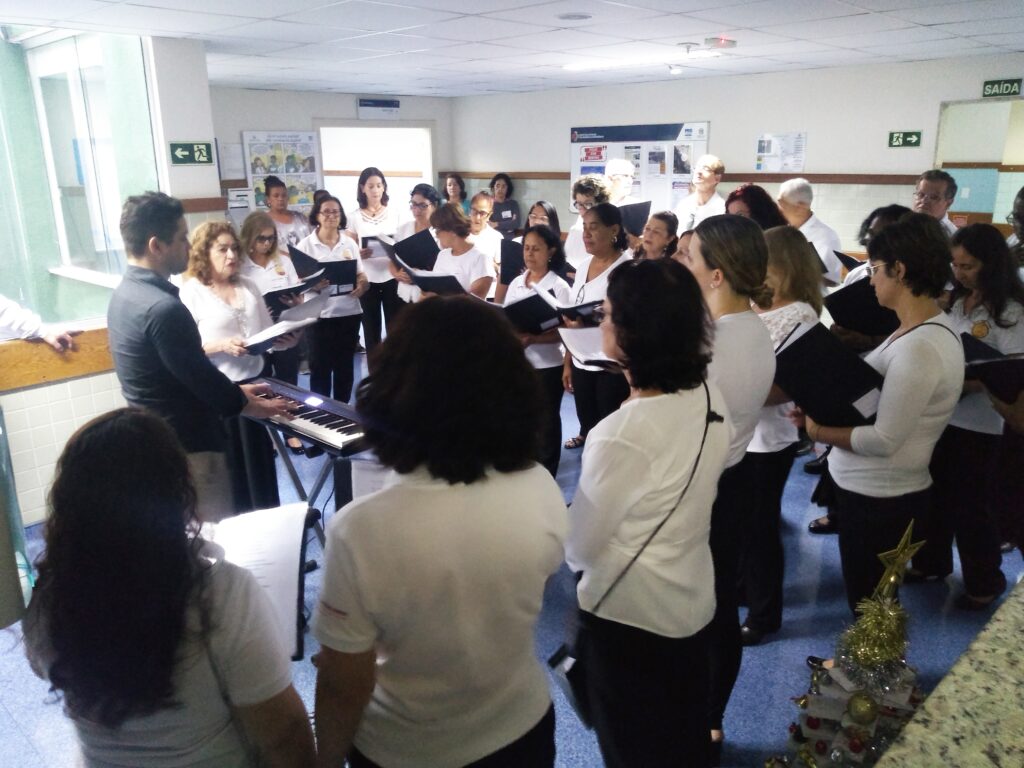 Músicas como “Glória a Deus nas Alturas”, “Noite Feliz” e “Noite Santa” emocionaram pacientes, acompanhantes e colaboradores na Cantata de Natal realizada no Hospital Estadual de Urgência e Emergência, em Vitória (ES), na tarde desta quarta-feira, 12 de dezembro. A ação contou com a participação de 31 voluntários dos corais das paróquias Santíssima Trindade e Bom Pastor, de Cariacica, e Bom Pastor e Sagrada Família, de Vila Velha, na Grande Vitória, tendo como regente o maestro Max Carvalho.