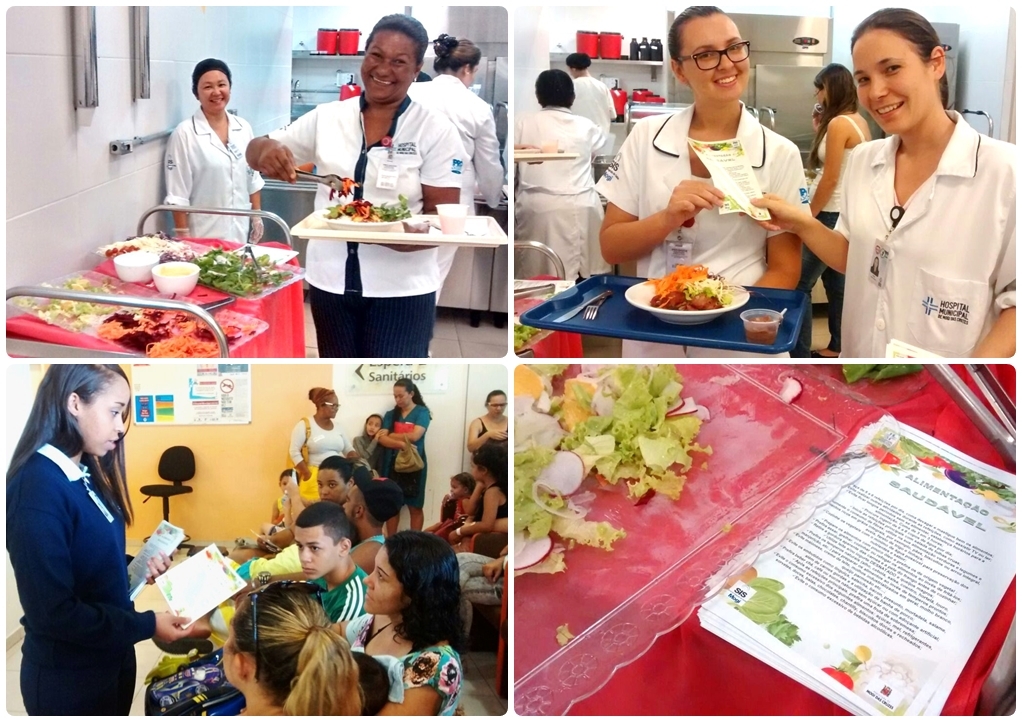 Panfletos sobre alimentação saudável foram distribuídos aos pacientes e acompanhantes. Os colaboradores tiveram à disposição, durante o horário da refeição, uma buffet com uma grande variedade de saladas. As atividades foram programadas e realizadas pelo Serviço de Nutrição e Dietética (SND).