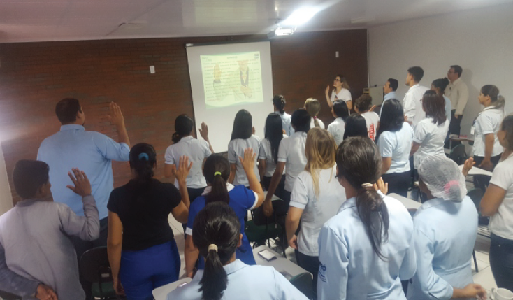 No final do evento, os colaboradores também participaram da demonstração de possíveis formas de alongamentos, por meio da realização da ginástica laboral no ambiente de trabalho.