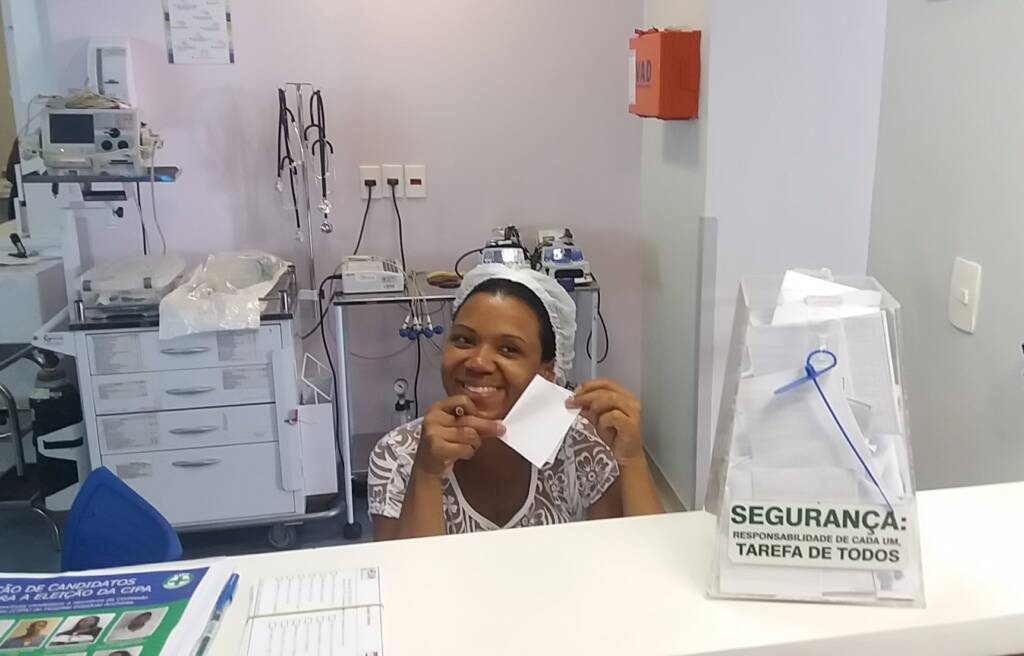 Os eleitos foram: Emanuele Barbosa, do Núcleo de Educação Permanente (NEP), Eduardo Souza (Higiene e Limpeza), Marcus Vinícius (Laboratório), Fábio Santos (Higiene e Limpeza), Camila Lopes (Recepção Central), Eliane Bandeira (Higiene e Limpeza) e Luciana Ernandez (Clinica Médica).
