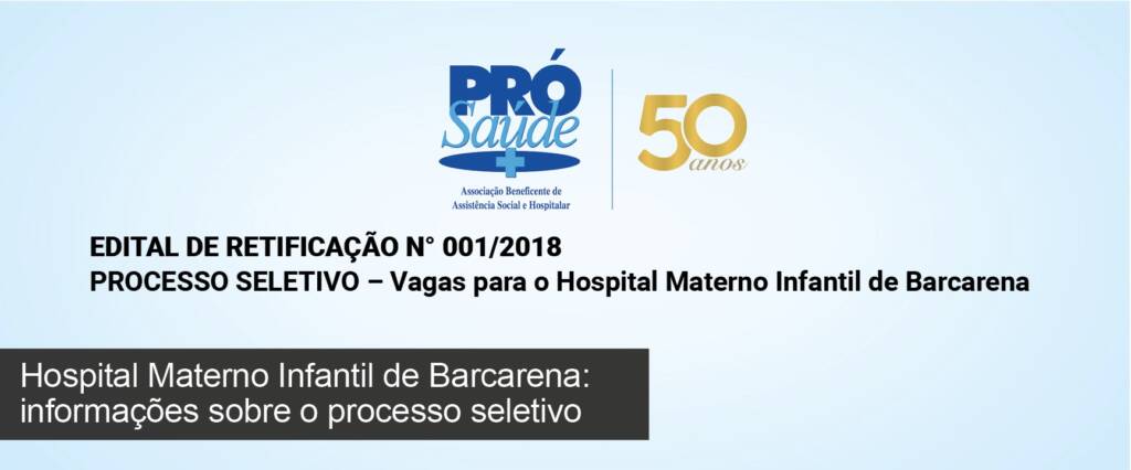OBJETO: Contratação de quadro de pessoal para atuar na Pró-Saúde Associação Beneficente de Assistência Social e Hospitalar – Hospital Materno Infantil de Barcarena – Barcarena/PA em diversas áreas, conforme Edital nº 001 publicado no site www.prosaude.org.br.