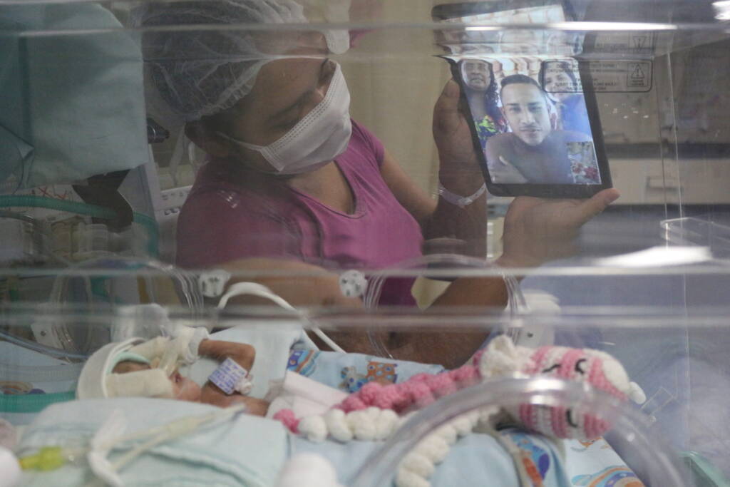 Para Kelen Nascimento, mãe de Isabela, que já acompanha a bebê há mais de um mês dentro UTI, esse contato com um rosto familiar também foi emocionante. A bebê nasceu prematura, com apenas 912 gramas, e diariamente, recebe cuidados para ganhar peso e ficar totalmente recupera.