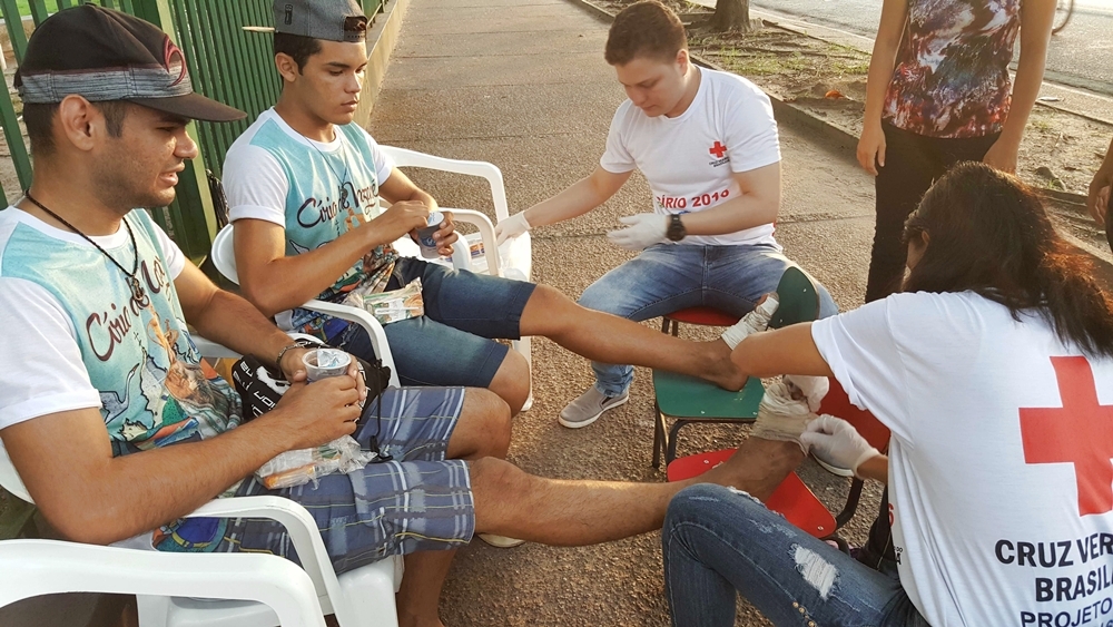 Vagner e Paulo foram dois dos mais de 100 romeiros assistidos pelo Hospital Metropolitano de Urgência e Emergência (HMUE), em Ananindeua, que montou um posto de atendimento em frente à unidade, na BR-316. Colaboradores e residentes prestaram assistência aos romeiros, muito deles, oriundos de outras cidades, como Vagner Alves. “Os sinais de cansaço são dores no pé, joelho e na perna. Então, a ajuda dos profissionais da área da saúde auxilia e serve para que possamos continuar a nossa caminhada”. Paulo Eduardo tem o mesmo raciocínio. “Realizei dois curativos no meu pé e creio que estou melhor para seguir”. No posto de atendimento do Hospital foram disponibilizados, além dos curativos, avaliação e massagem dos pés e distribuição de lanche e água. Também foi possível aferir pressão e glicemia.