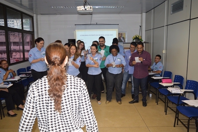Uma das dinâmicas utilizadas envolveu músicas nacionais e famosas. Os colaboradores tiveram que interpretá-las, divididos em dois grupos. Tânia argumentou que, nesse momento, é possível identificar pessoas que estão ou são extrovertidas. “Mas tem muito a oferecer. A timidez não é uma fragilidade. É uma forma de ser. Lidar com a diversidade é um grande desafio”, afirmou a coach. “Todo mundo está ansioso, angustiado, cenário econômico e social desafiador, como nunca na história desse país. Isso se reflete no comportamento do dia a dia”, alertou Tânia, abordando aspectos comportamentais.