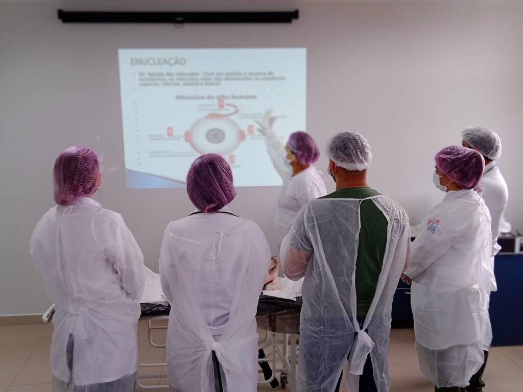 “Aprendemos na prática a técnica da enucleação, que é a retirada da córnea em perfeito estado para doação. Simulamos o procedimento cirúrgico em uma cabeça de porco e conhecemos as etapas necessárias para que o processo seja realizado com êxito até o doador”, explicou.