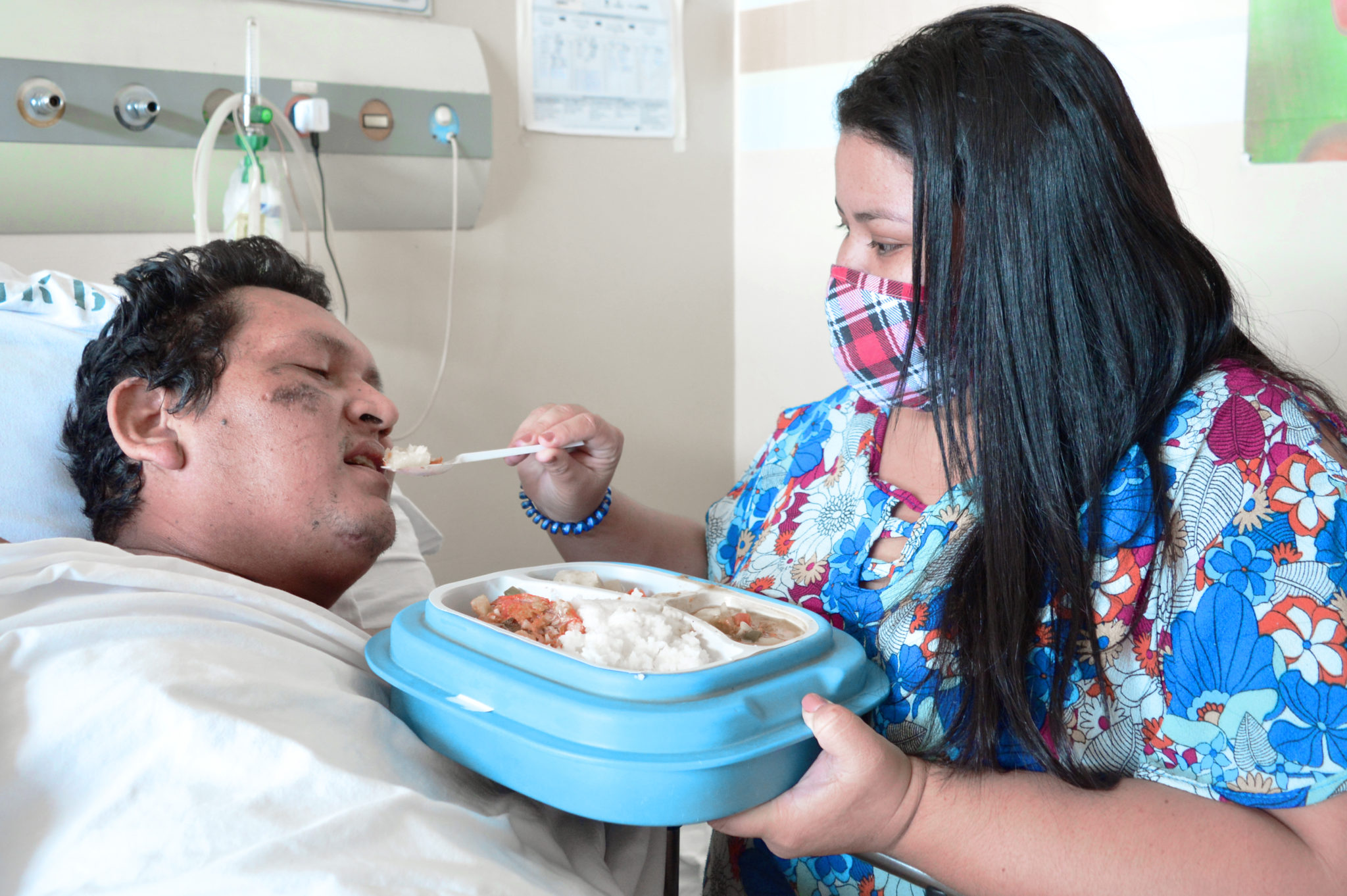 No cardápio, os profissionais da nutrição observam as condições clínicas para planejamento da dieta mais adequada a cada paciente. “A alimentação é essencial para uma boa recuperação. Sempre vem uma frutinha de manhã, ao meio dia vem a refeição sempre com salada, e alimentos da região, um peixinho. Me sinto muito bem quanto a alimentação aqui no Hospital Regional do Baixo Amazonas, pois realmente é saudável e gostosa”, afirma o paciente Jeferson Guimarães que se recupera da Covid-19, após 30 dias internados na UTI.