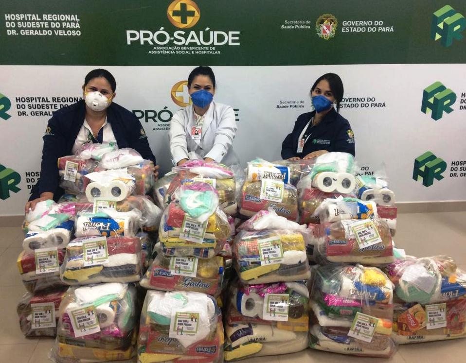 Os profissionais do Hospital Regional do Sudeste do Pará Dr. Geraldo Veloso (HRSP), em Marabá (PA), realizaram um grande gesto de solidariedade, ao arrecadarem, ao longo do mês de junho, 600 quilos de alimentos, que serão distribuídos para famílias em situação de vulnerabilidade social.
