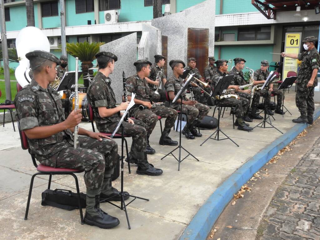 Os 16 militares do 51º Batalhão de Infantaria de Selva – (51º BIS) entoaram diversas canções por cerca de 40 minutos e arrancaram aplausos da plateia, formada por colaboradores do HRPT, acompanhantes e usuários.