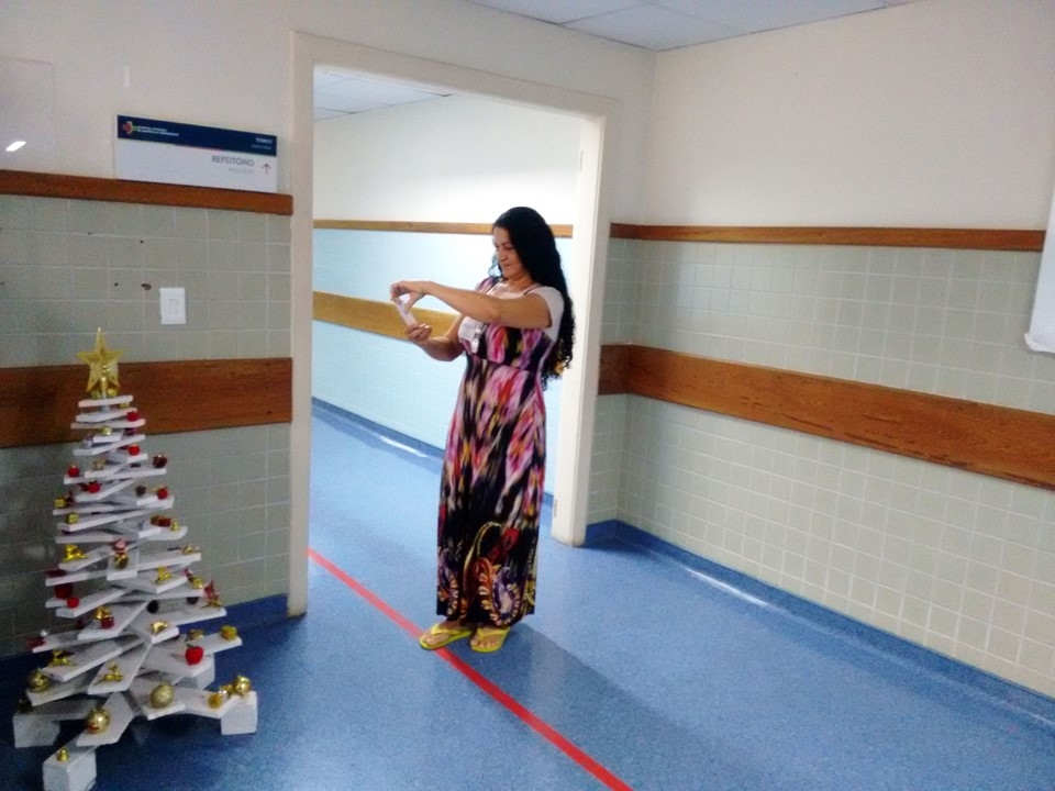 A cuidadora de idosos, Eva Gonçalves Ribeiro, fez questão de registrar com seu celular os espaços decorados do hospital. Ela conta que nas horas vagas tem o hábito de utilizar materiais descartáveis para fazer tapetes, luminárias para decorar sua casa e obter uma renda extra. “Um simples material reciclável pode embelezar qualquer lugar. Em um hospital, é a primeira vez que vejo. O trabalho ficou maravilhoso”, disse a cuidadora.