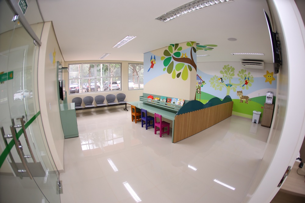 O novo espaço ganhou uma recepção mais ampla e dois consultórios de atendimento, ampliando de 10 para 12 salas, banheiros com acessibilidade e um espaço de espera exclusivo crianças que aguardam consulta médica com os seus pais. O “espaço kids” é equipado com brinquedos educativos, mesas para desenhar, televisão e fraldário, garantindo entretenimento aos pequenos durante o período de espera.