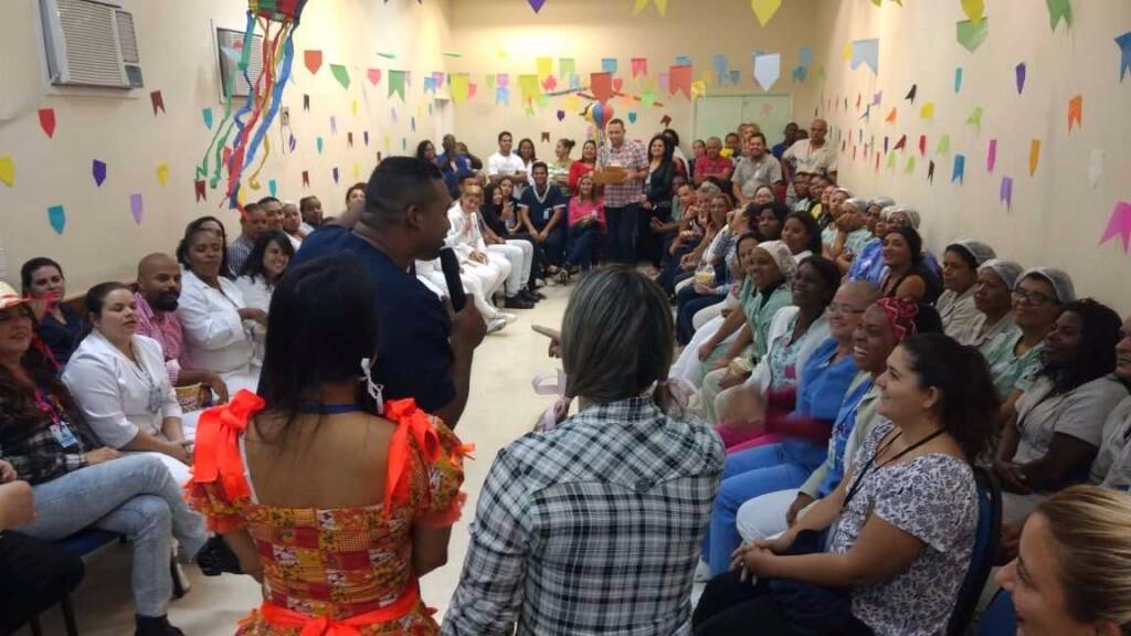 A Comissão de Humanização do Hospital Estadual Getúlio Vargas (HEGV), no Rio de Janeiro (RJ), formada por colaboradores da unidade e assessores de Humanização da Secretaria Estadual de Saúde (SES), organizou uma animada festa junina na tarde de sexta-feira, 23/06.
