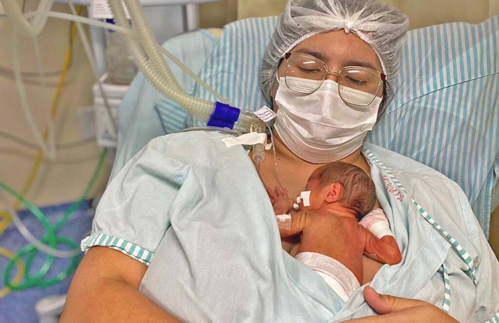 No Hospital Materno-Infantil de Barcarena, a prática, focada no contato pele a pele entre mãe/pai e recém-nascido, é aplicada também em bebês entubados