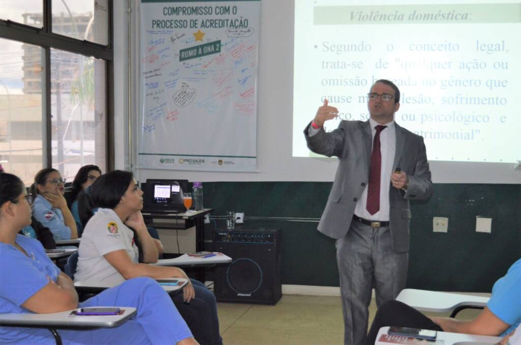 Na manhã desta sexta-feira (13), o Hospital Metropolitano de Urgência e Emergência (HMUE), gerenciado pela Pró-Saúde em Ananindeua, recebeu o promotor de justiça, Franklin Prado, do Núcleo Mulher do Ministério Público, para ministrar uma palestra sobre violência doméstica. Voltada para colaboradores da unidade, a ação encerrou a semana de programação especial em alusão ao Dia Internacional da Mulher, celebrado no último domingo (8).