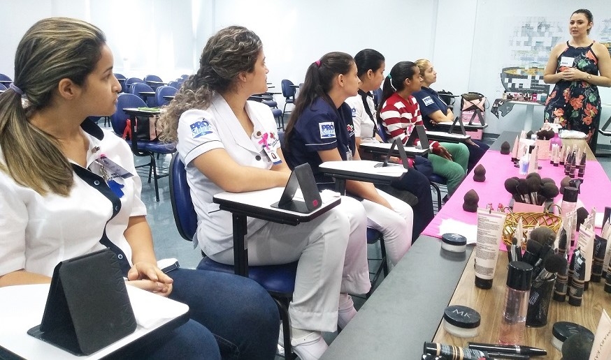 Colaboradoras do Hospital Estadual de Urgência e Emergência, em Vitória (ES), participaram do dia 17 até esta quinta-feira (25), do Momento Beleza, com orientações e dicas sobre cuidados com a pele e automaquiagem.