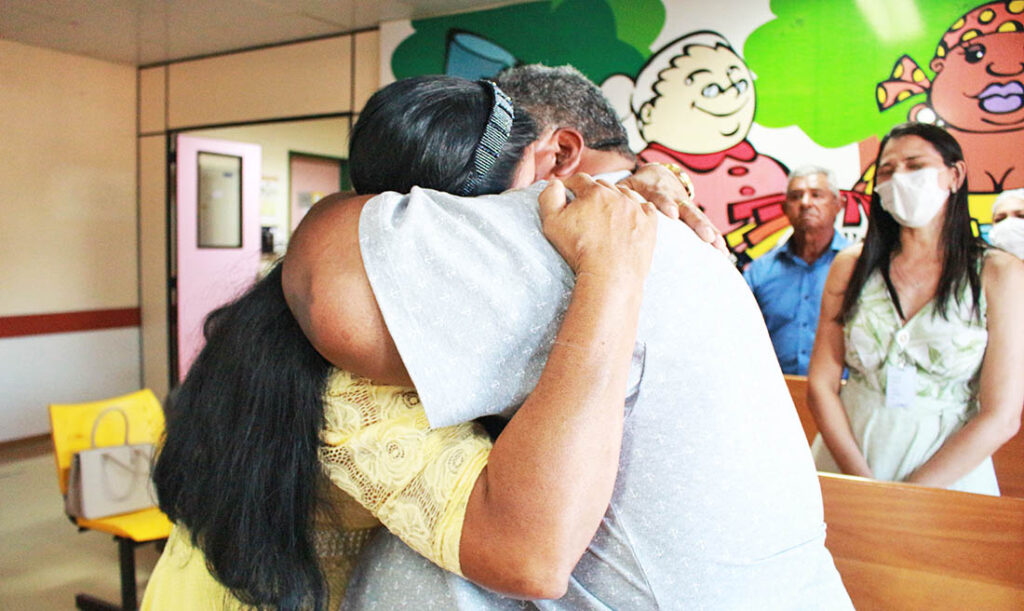 “Quando ficamos sabendo do casamento comunitário, ela foi atrás de toda a documentação. Depois fiz o pedido de casamento e ela aceitou. Só não esperávamos que seria tão rápido. Como ela passou mal e precisou se internar, demos um jeito, que foi a procuração e agora vamos fazer a cerimônia aqui no hospital. Eu estou muito feliz!”, celebrava o noivo.