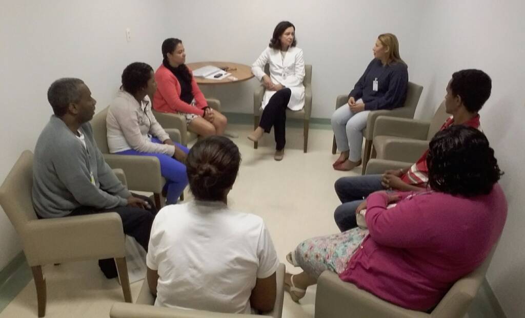 A dona de casa Jacira Coelho Levino participava do grupo, na última semana, enquanto seu filho se encontrava em cirurgia para a retirada de um tumor. Muito tensa quando começou a reunião, Jacira se sentia mais tranquila ao final. “Nunca participei de um grupo assim. Pude me expressar, não precisei segurar o choro. Aqui o tratamento é humanizado, todos nos recebem com sorriso e educação. O saldo foi muito positivo”, comentou.